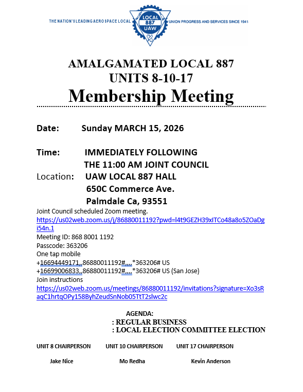 Blog Local 887 March Joint Council Meeting Ed Wilson 13 Dec, 2025 Social share icons https://uaw.org/education/family-scholarship/