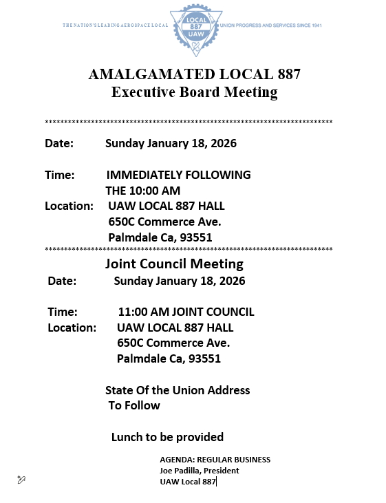 UAW Executive Board & Joint Council Meeting January 18th 2025